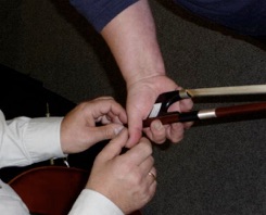 Keine französische Bogenhaltung. Keine "deutsche" Bogenhaltung. Hier geht es um die "wienerisch-tschechische". Ich halte sie für ausgezeichnet und sie bietet genug Möglichkeiten für individuelle Anpassungen, denn jede Hand ist anders.